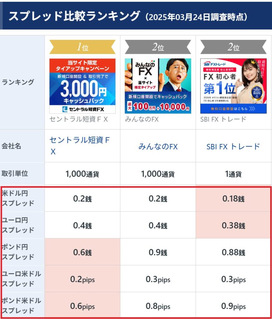 もしスキャルピングでFXをするのであれば、1日の取引回数が「数十回」になるので、スプレッドが小さい会社を選ぶことが必要です。