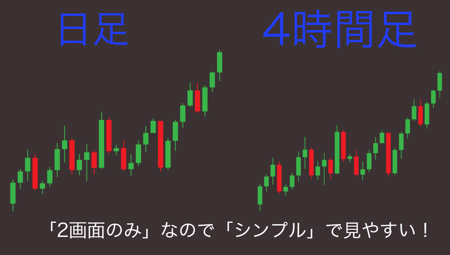 当スクールで推奨している 「日足・4時間足トレード」は 、初心者でもすぐに利益が出せるとてもシンプルな手法です。
