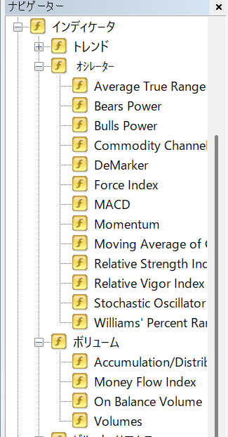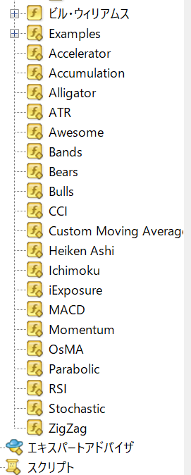 以下、MT4で使えるインディケータ―の一覧ですが、初心者がつかいこなせるわけがありません。