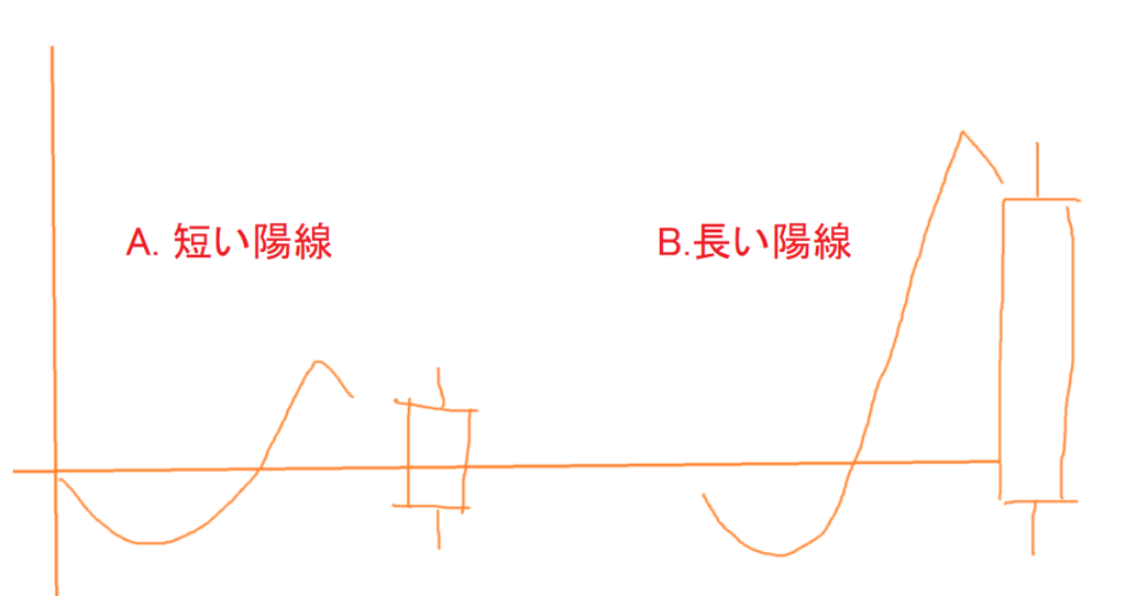 ・「長い陽線」= 買いたい人が多い(需要が高い)
