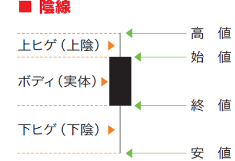 陽線とは逆で、1日の「最初と最後」で、「始値よりも終値は下にきた」⇒「陰線確定」ということです。