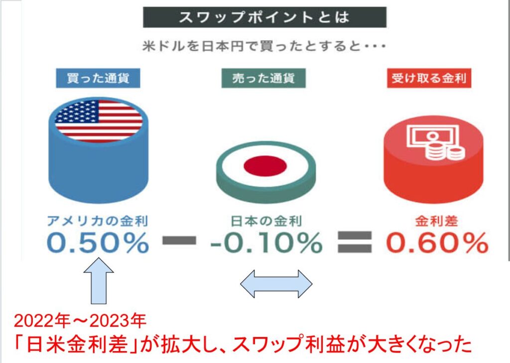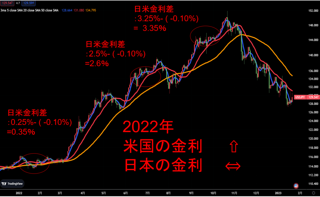 2022年、米国の金利が上昇し、日本の金利が据え置きの状況で「日米金利差」が発生