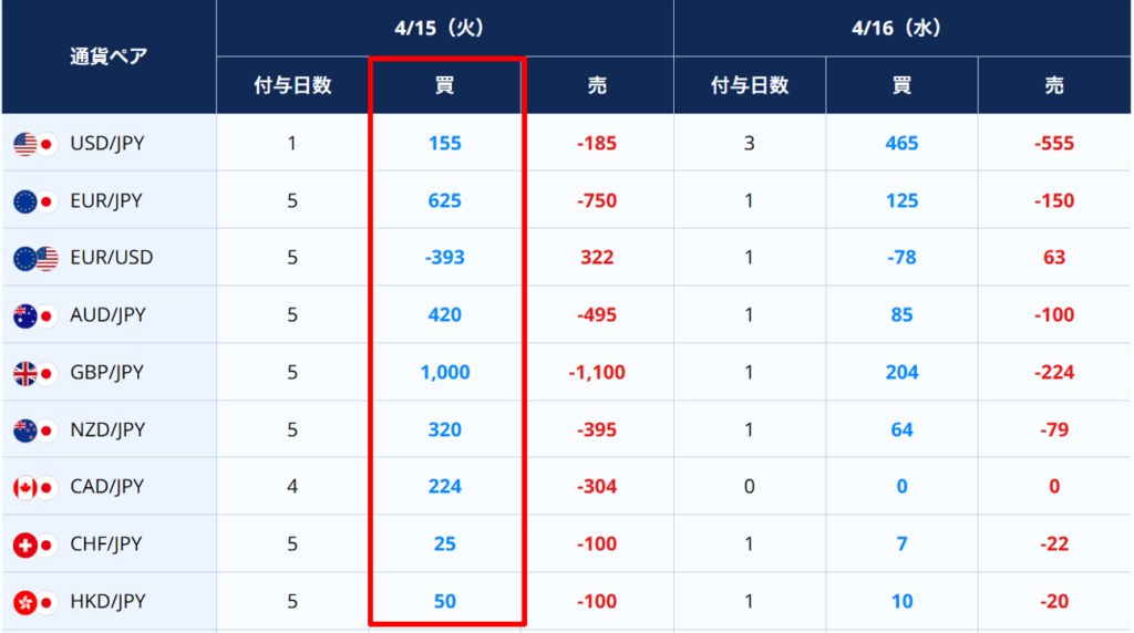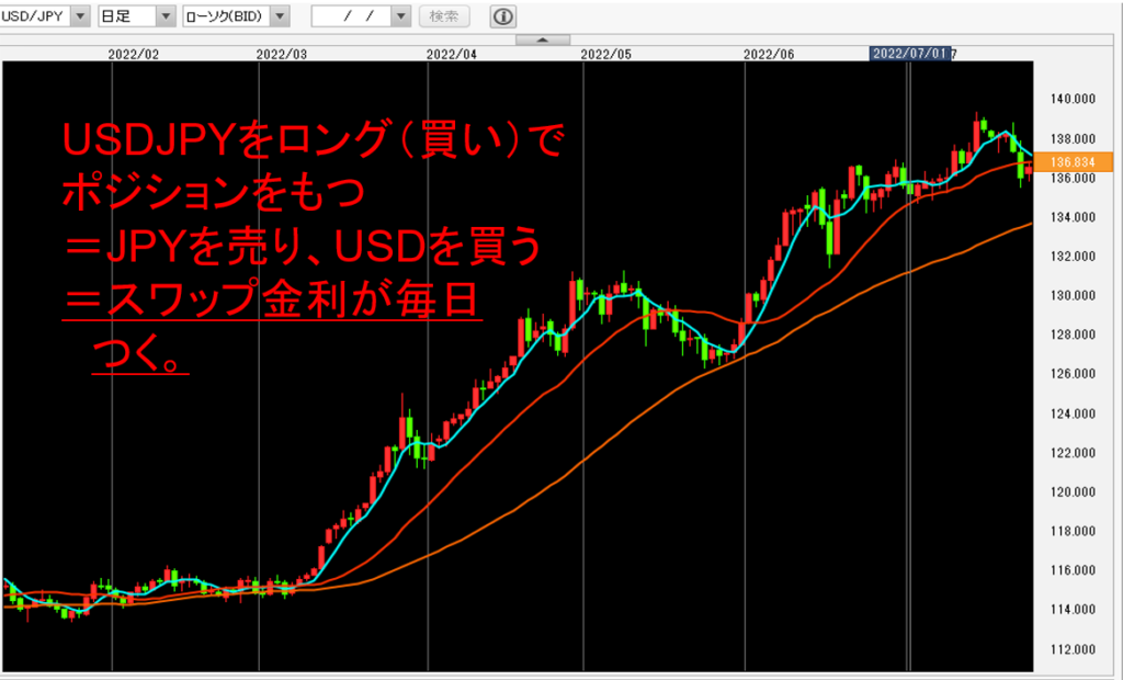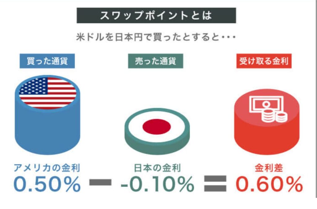 ⇒ 金利が高い国の通貨を持つことで、毎日スワップポイントがもらえます。