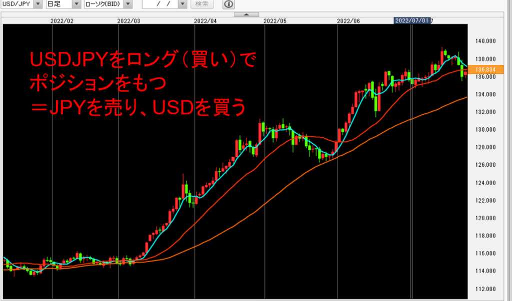 FXでは「USDJPY (ドル円)」で「買い注文」を入れること=「円を売ってドルを買う」ことになり、毎日スワップ利益がつくのです。