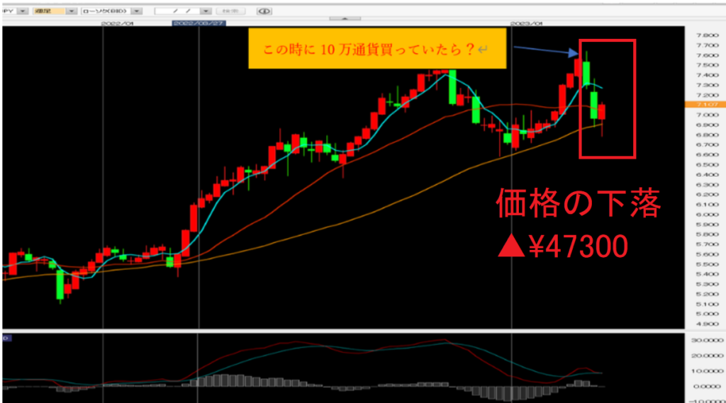 その後、メキシコペソの価格は下落しました。(赤枠)