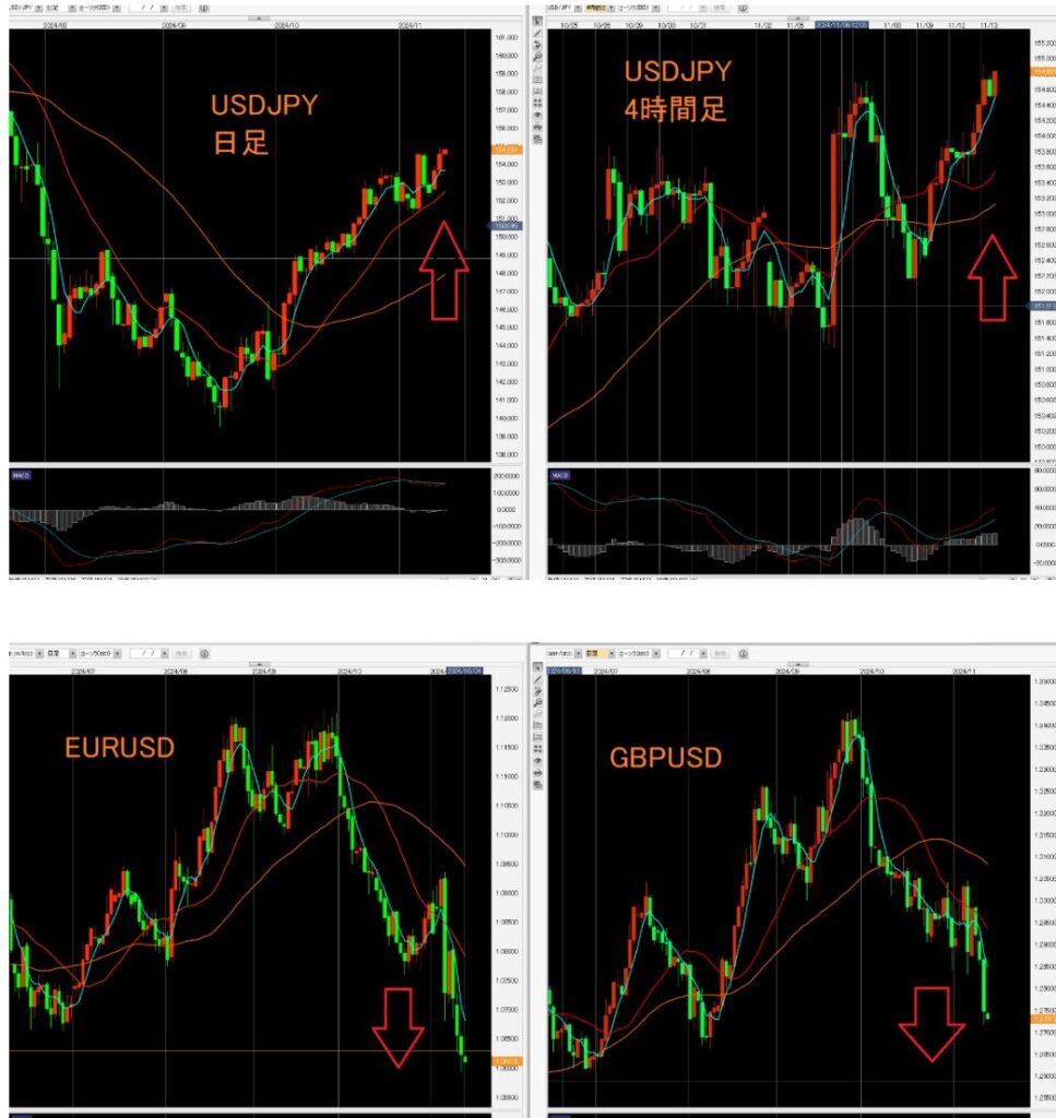 * USDJPY のみ 日足4時間足。他のチャートは日足。