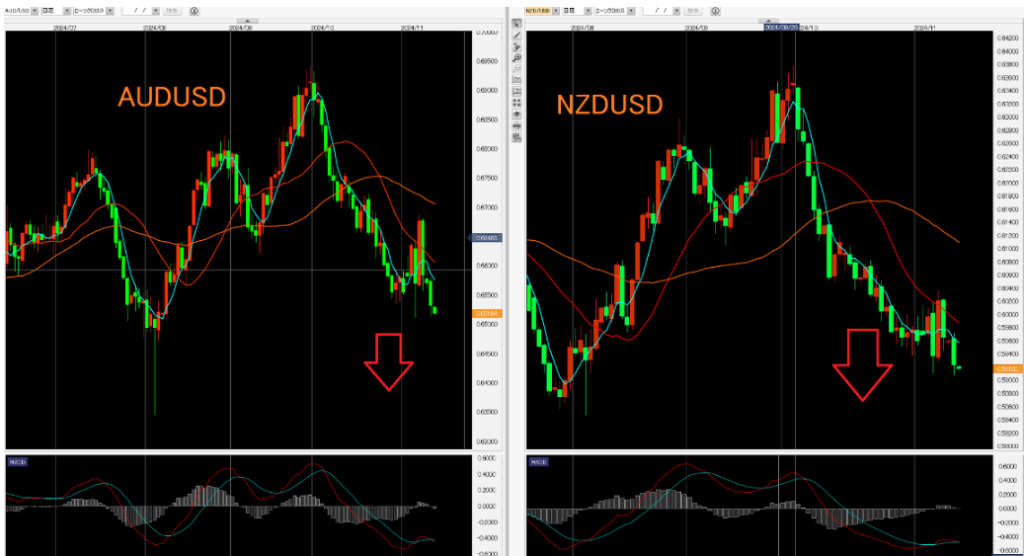 ですが、それ以外の「ドル組」の通貨ペアは「⇩」です。