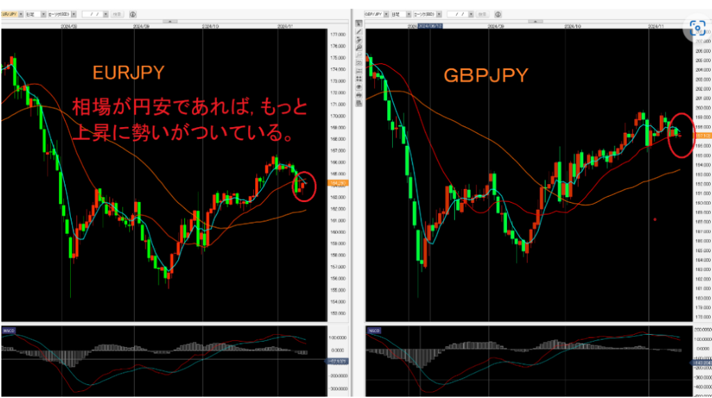 たとえば、今の「ドル高の状況」で、「〇〇円」という「円の通貨ペア」をいくらチャートチェックしても意味がありません。