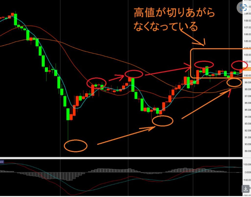 つまり、ダウ理論で見ると、すでにトレンドの勢いが失われていたのです。