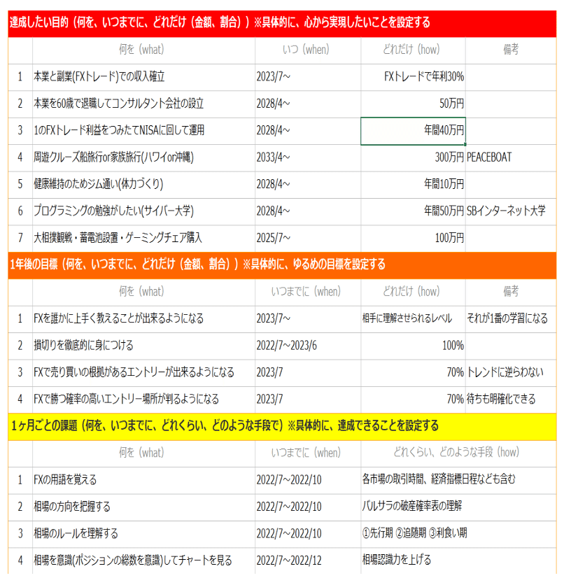 入校前には、受講生に「目標管理シート」を書いてもらっている。