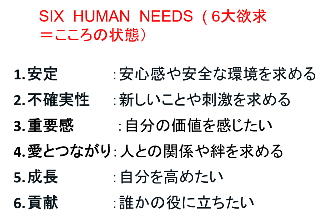 「シックス・ヒューマン・ニーズ」は、人間だれもがもつ「欲求」です。