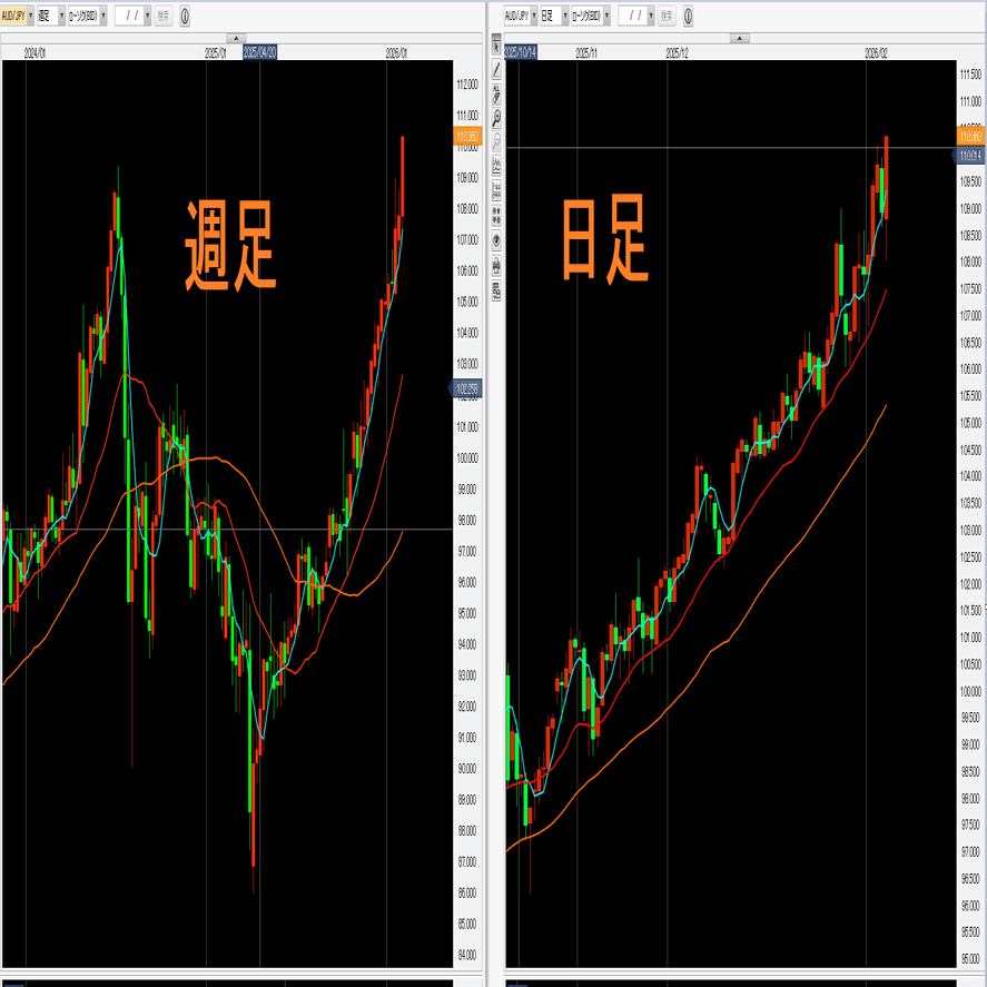 その意味では現在、AUDJPYやAUDUSDなどが比較的その条件に当てはまる状況だといえる。