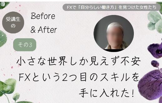 ある受講生Sさんは、EDGEでFXを学びながら「俯瞰力」を身につけたことで、自身の心の余裕や仕事の在り方に変化が起きたと語る。