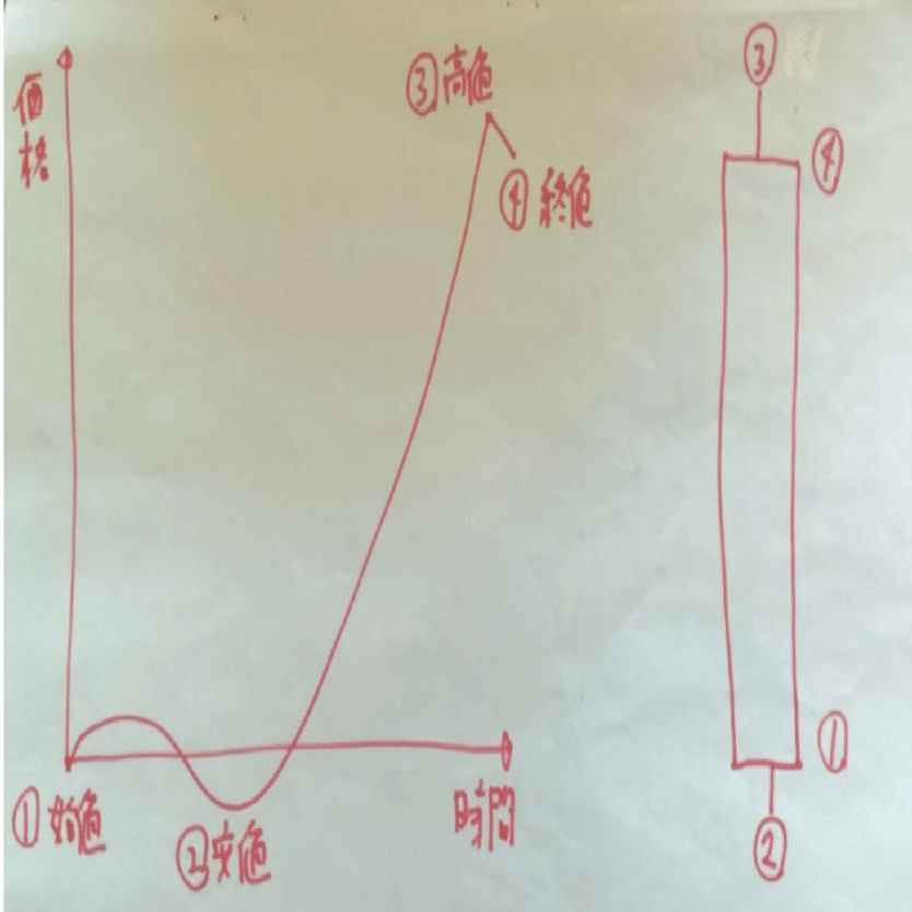 「ローソク足の手書き」の詳しい解説は以下の動画を参考にしてほしい。