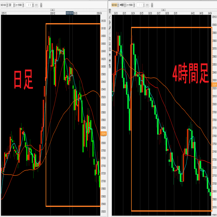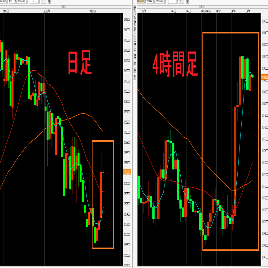 その中で、動画講座の復習になりそうな、日足4時間足のチャートパターン的に、