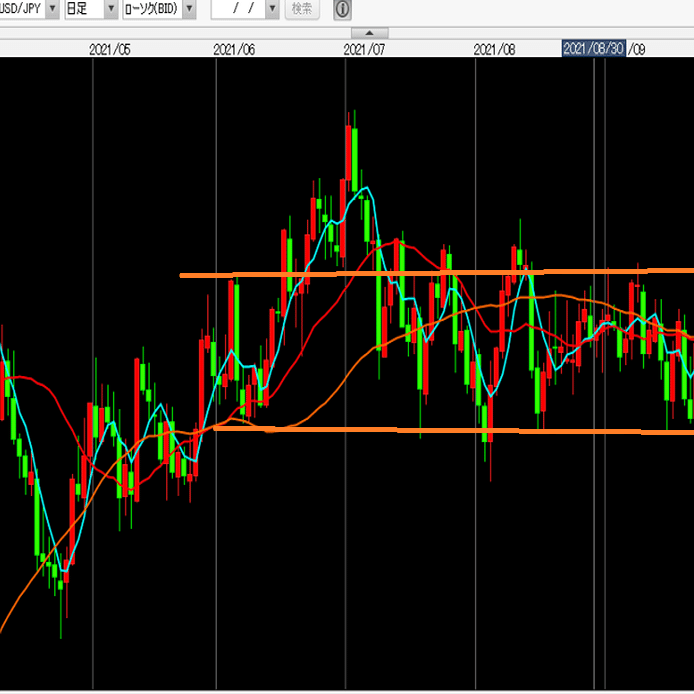 レンジ相場に上下のラインを引き、