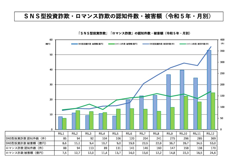 増加するSNS投資詐欺の被害額