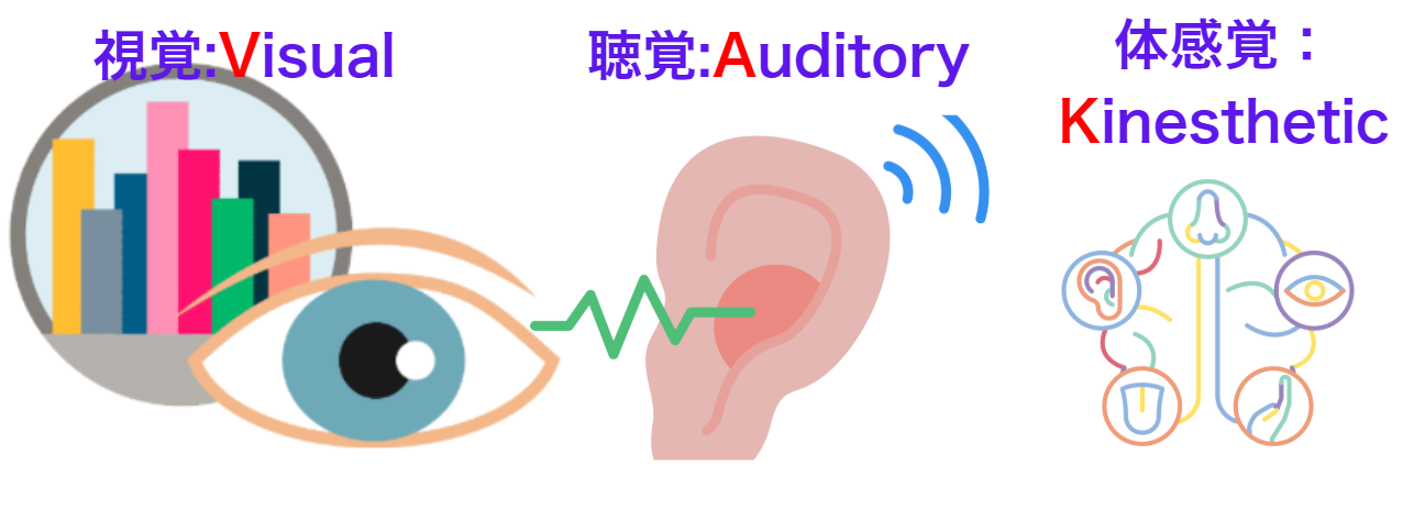 外的自己認識を養うためには、「視覚(V: Visual)」「論理(A: Auditory)」「感覚(K: Kinesthetic)」の三つの視点をバランスよく育てることも効果的である。