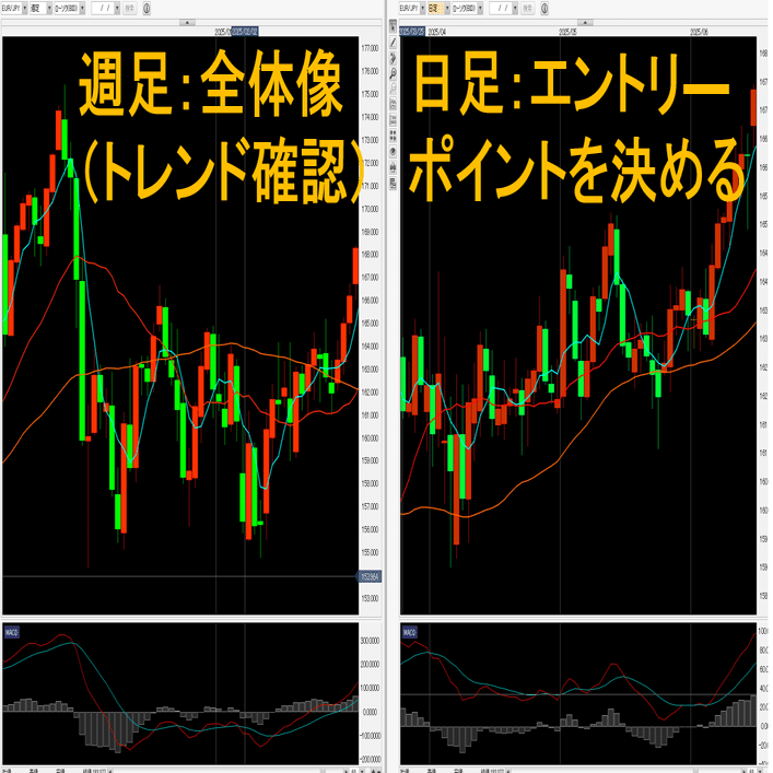 週足・日足のように、時間軸をマクロにするだけで、トレードの迷いは大きく減る。