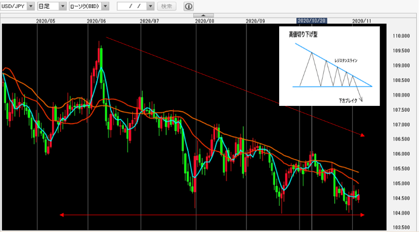 Aタイプは「高値・安値がそれぞれ切り下げ。。」と「ことば」でまず考える。