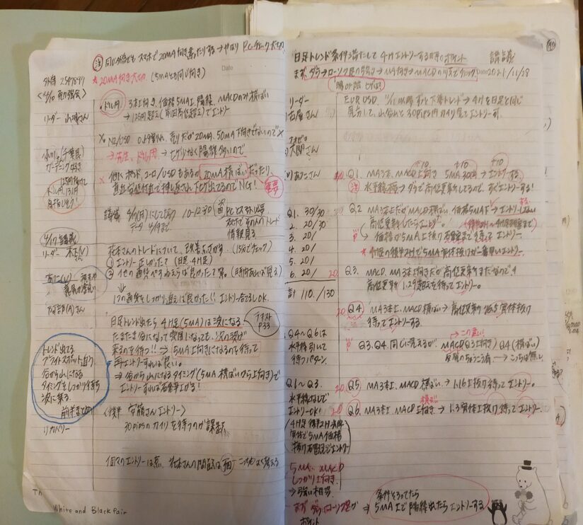 Kタイプ女性の授業ノート。Kタイプは「手書き」があう。この女性は、FXの勉強は授業に手書きで書くのみ