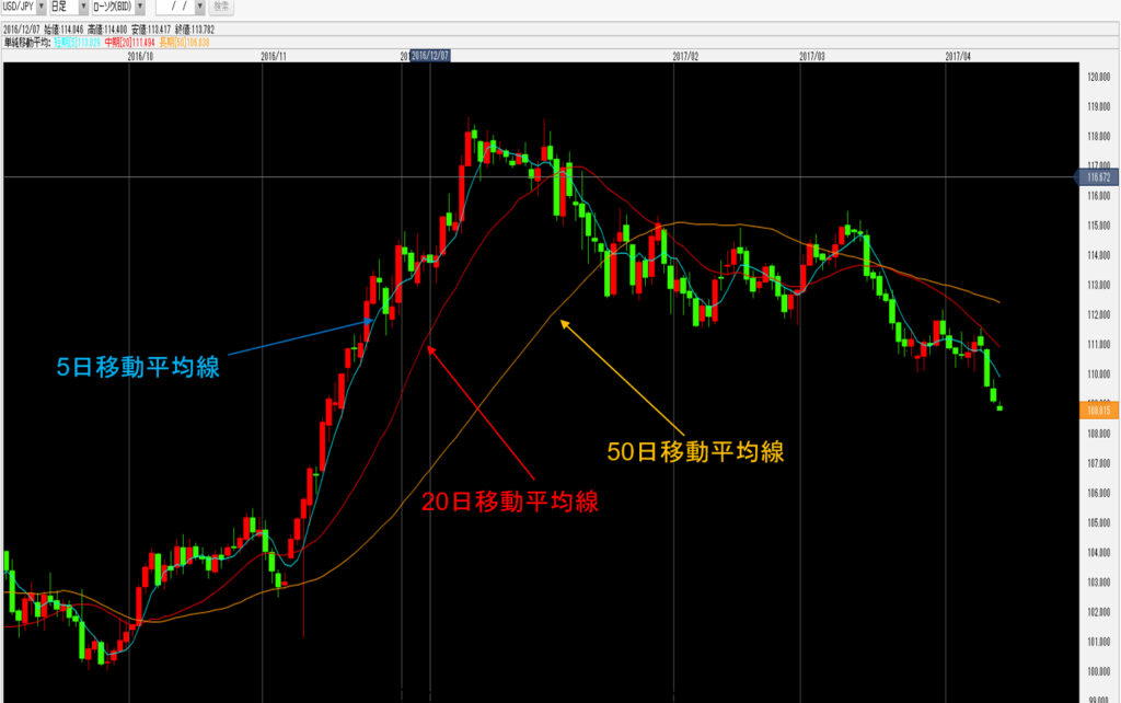 まずは、ローソク足と移動平均線の関係をおさらいしましょう。