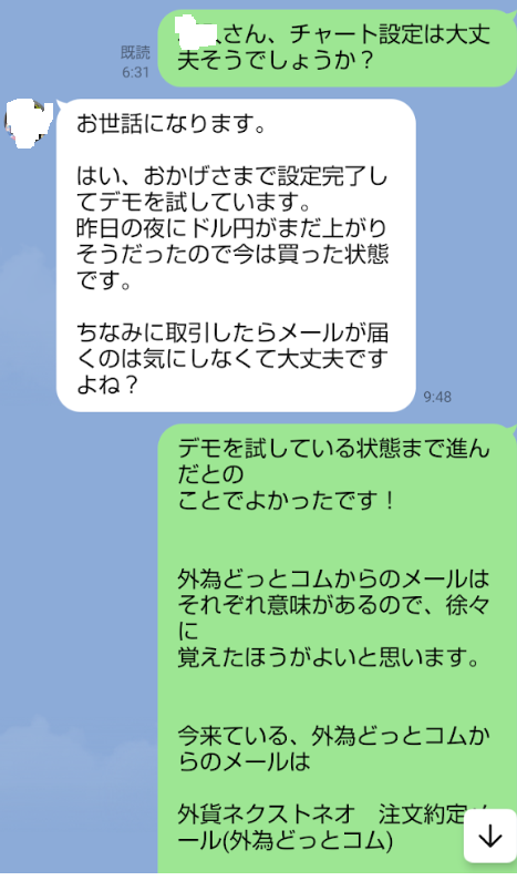 LINE・メールで質問OK! チャート設定やデモのやり方でわからないことを自由に聞けます。